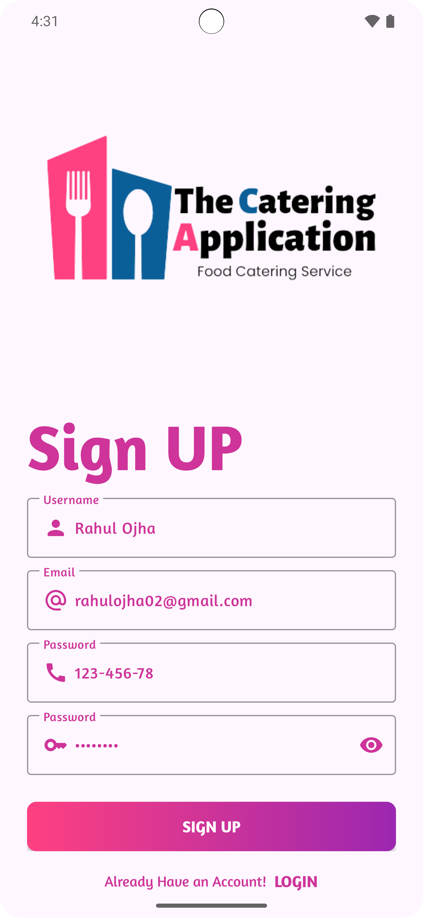 The Food Catering Application significantly streamlines the catering experience. From exploring services to placing orders and managing backend data, users enjoy a seamless process. Admins benefit from a robust dashboard for operational control. With an eye for UI/UX design, smooth animations, and secure API integration, this project strengthens my Android development portfolio and demonstrates my ability to build end-to-end functional apps.